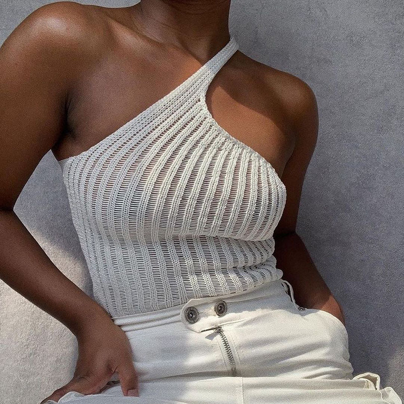 As lãs curtos do estilo tecem a mulher traseira da camisa da blusa T do coração do ombro oblíquo